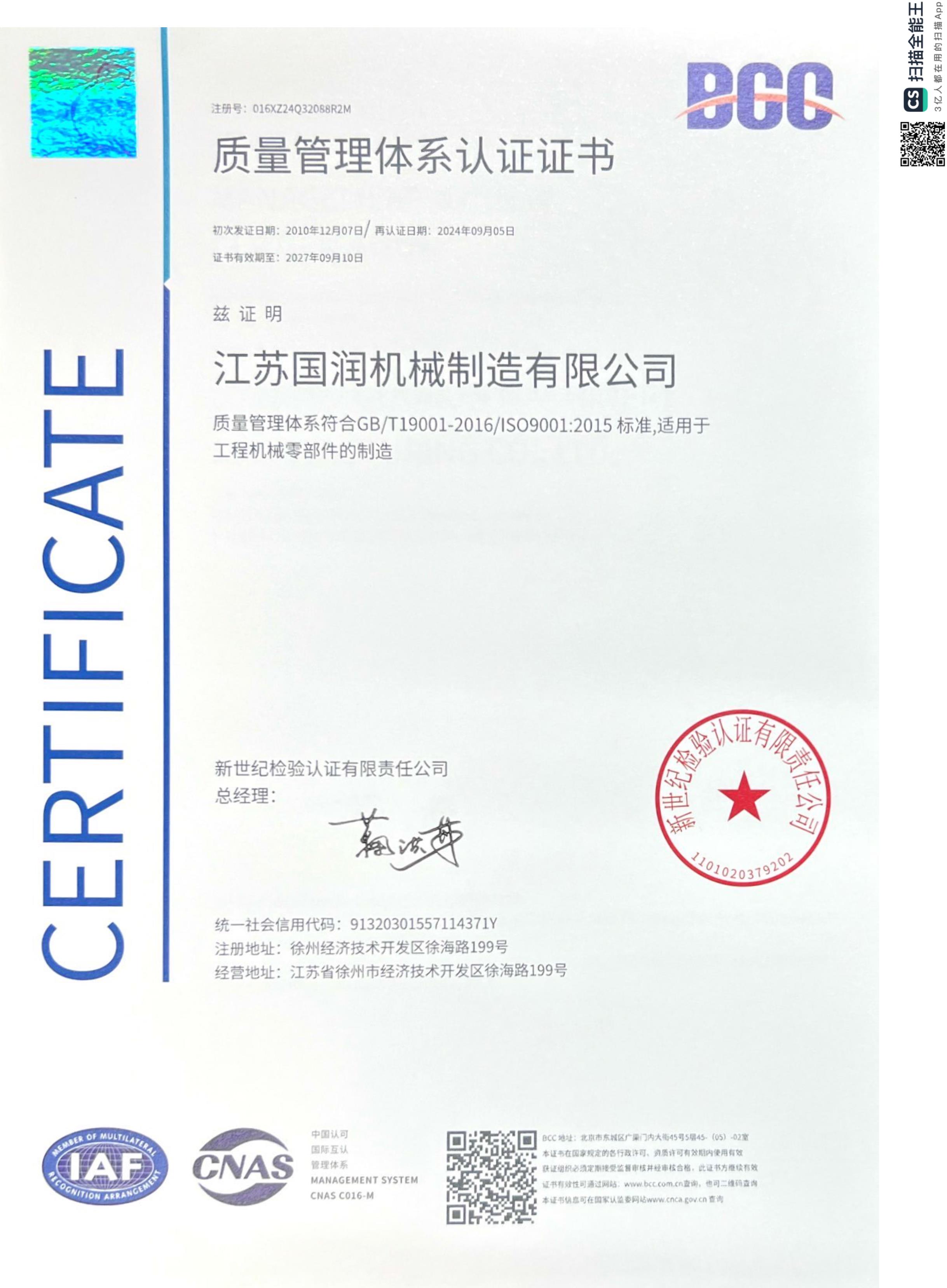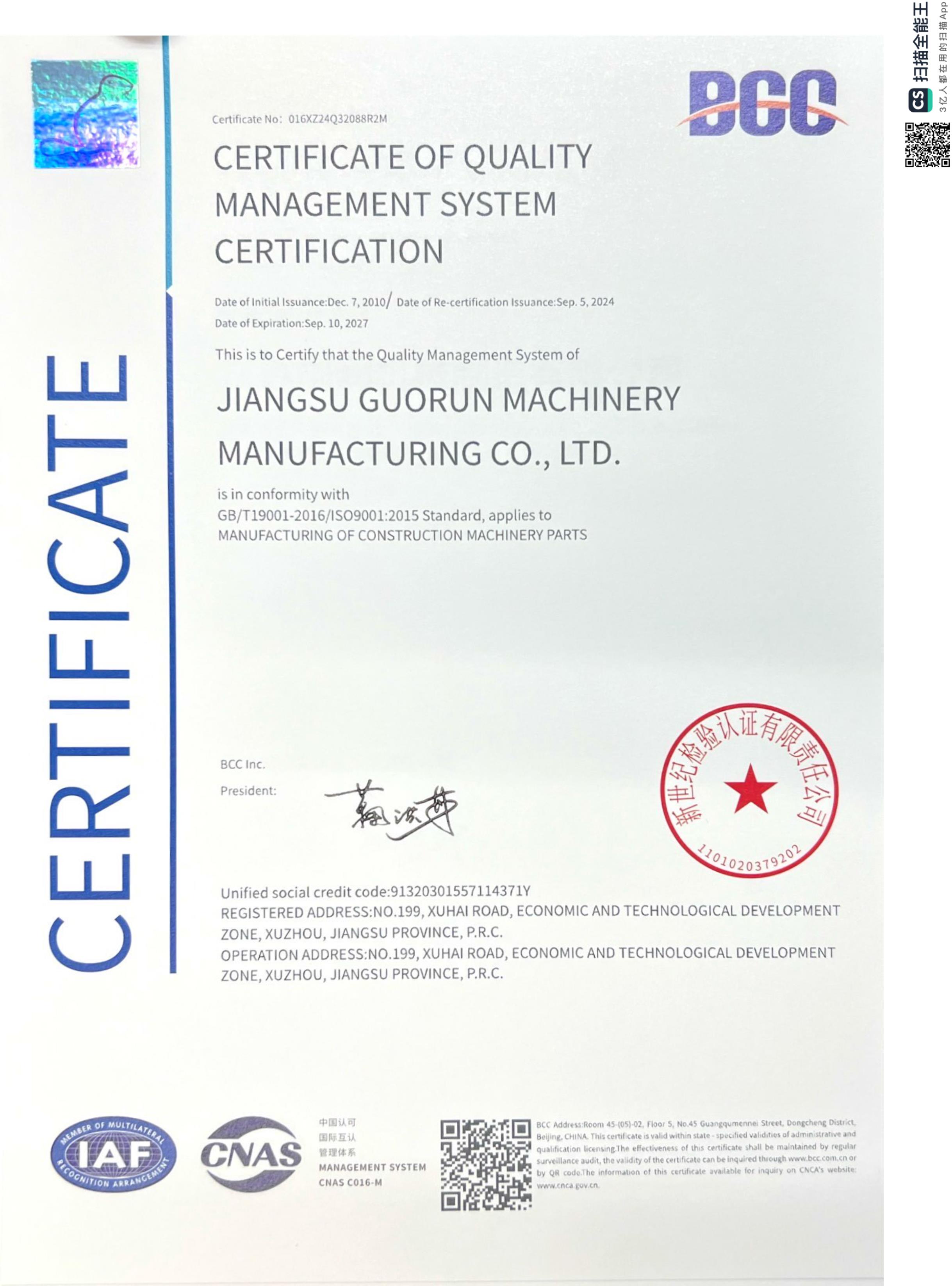 CERTIFICATE OF QUALITY MANAGEMENT SYSTEM CERTIFICATION