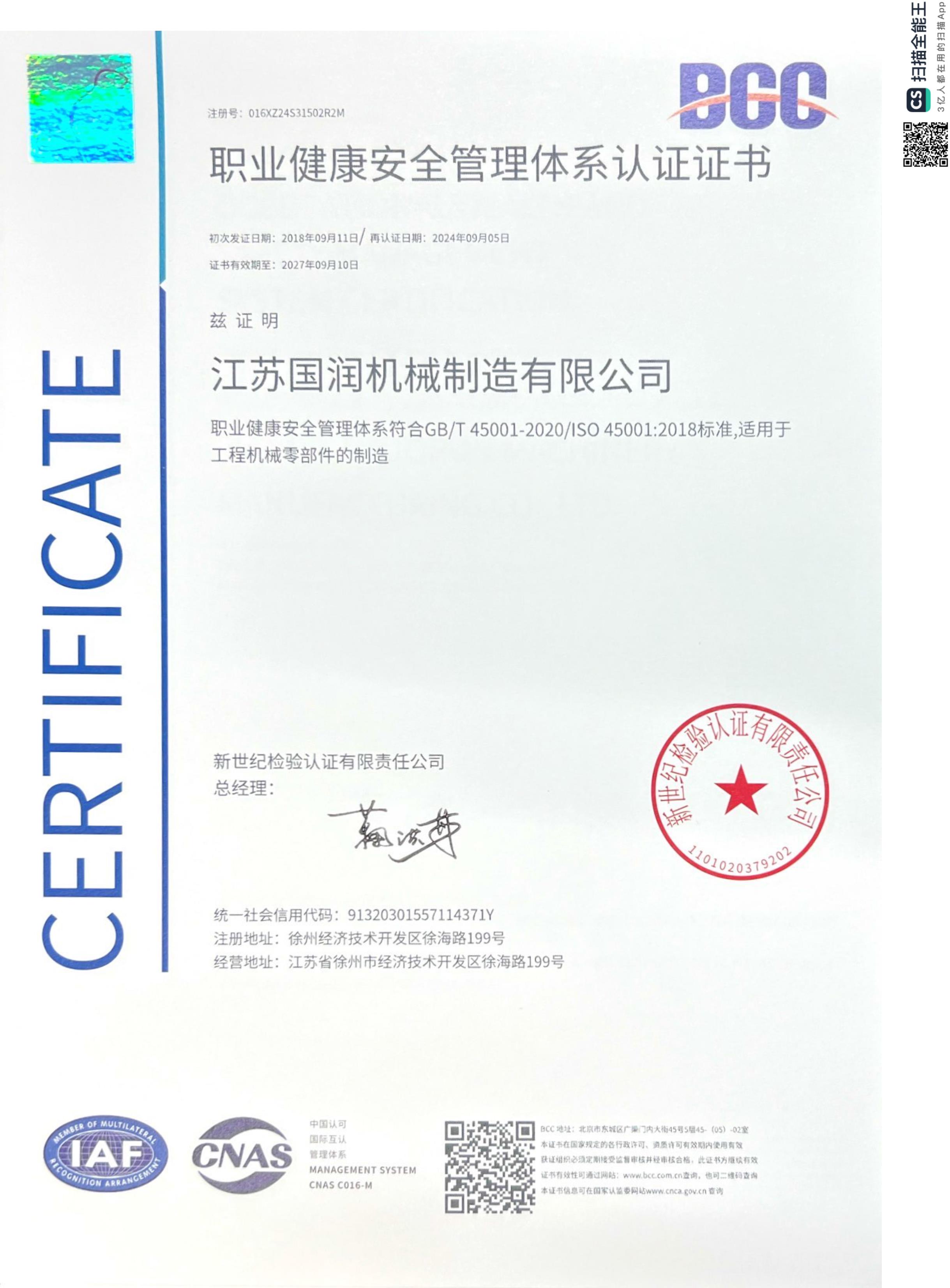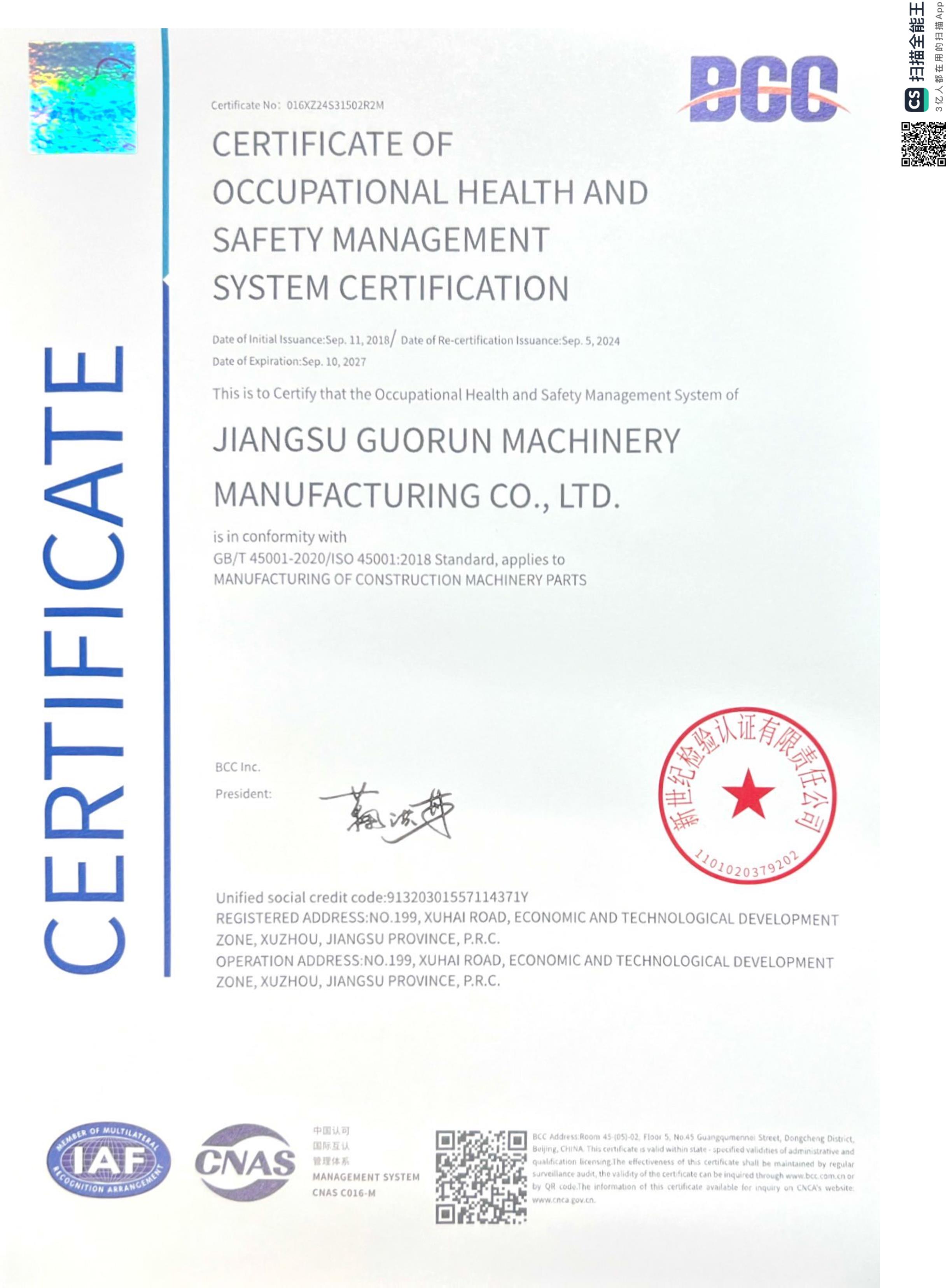 CERTIFICATE OF OCCUPATIONAL HEALTH AND SAFETY MANAGEMENT SYSTEM CERTIFICATION