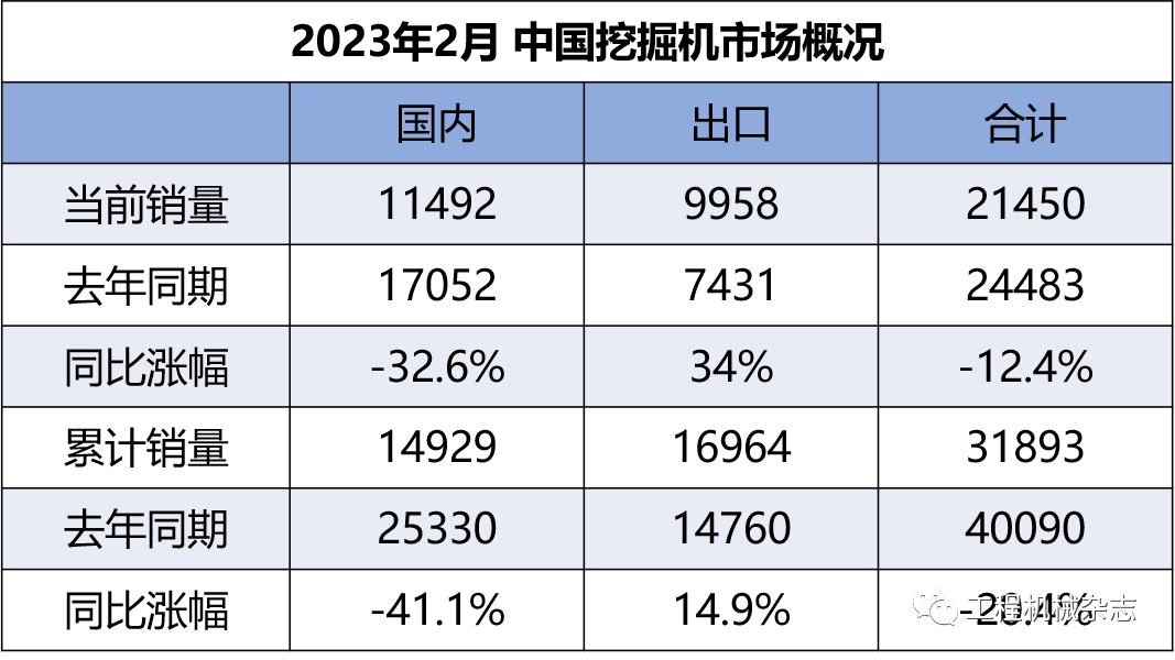 据中国工程机械工业协会对挖掘机主要制造企业统计,2023年2月销售各类挖掘机21450台,同比下降12.4%,其中国内11492台,同比下降32.6%;出口9958台,同比增长34%。2023年1-2月,共销售挖掘机31893台,同比下降20.4%;…......